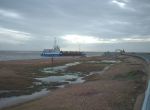 Bolstering the defences by the Golf Course at Felixstowe Ferry, the ship was shallow drafted and was able to come in very close to the beach