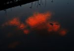Reflection of sunset in puddles of water