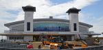 Felixstowe Dock Cranes 10 miles [11.2 miles via road] as the crow flies from Ipswich Hospital 6th floor through toughened double glazed windows