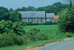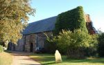 Alderton Church from a moving car, St Andrew lost its tower in the 19c and is now covered in ivy, see Simon's Churches webpage for further details here http://www.suffolkchurches.co.uk/alderton.htm