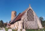Barsham on the border with Norfolk with the River Waveney separating both counties. The Church of Holy Trinity is a fine example with a round tower and thatched Nave roof. Latticing on the Chancel outside wall needs to be seen to be admired for the skill performed by the medieval stonemasons.