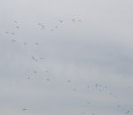 Shelduck in flight and hundreds flocking