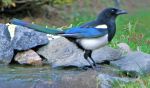 A very distinguishable bird like no other in the UK, the Magpie has few friends but lots of enemies as they poach eggs and small birds from their nests, having said that they are quite a colourful bird on close inspection, we get a daily visit from one of these.