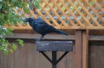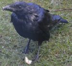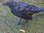 One persistent Crow after the dogs dinner leftovers yesterday morning in the rain, must have been soggy though as the feeding table filled up with water