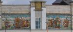 These tiles on a shop front in Lowestoft preparing for a sea battle [Sole Bay??] but on the ledge are Kittiwake birds nesting