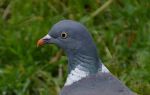 Woodpigeon needing a drink with a little help from a frog