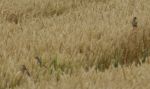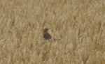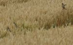 On Friday I saw these birds on sheafs of corn, I knew Corn Buntings could be seen in the area and I have just had confirmation from the RSPB guys that they are Corn Buntings, these are quite rare in the UK these days and are on the Red Status of wildlife protection, I haven't seen one of these in over 60 years, we think there are two young also, very distant shots and well cropped