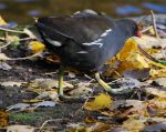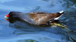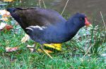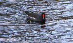 Bald as a Coot is a saying due to the hard white plate on the front of its forehead, the Moorhen has the red beak and has much larger feet than the Coot