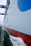 Pilot boat approaching mv Balmoral in the mouth of Harwich Haven to pick up the pilot from Ipswich c1998