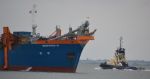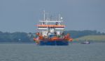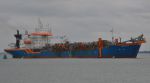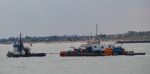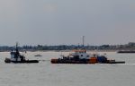 WATER JET DREDGING PONTOON called Jetsed leaving the Stour estuary yesterday with a Danish registered tug