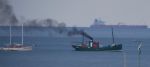 When taking this photo of the barge I noticed a steamer in the picture on the River Orwell by Levington Marina