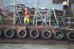 The old tug pontoon being demolished